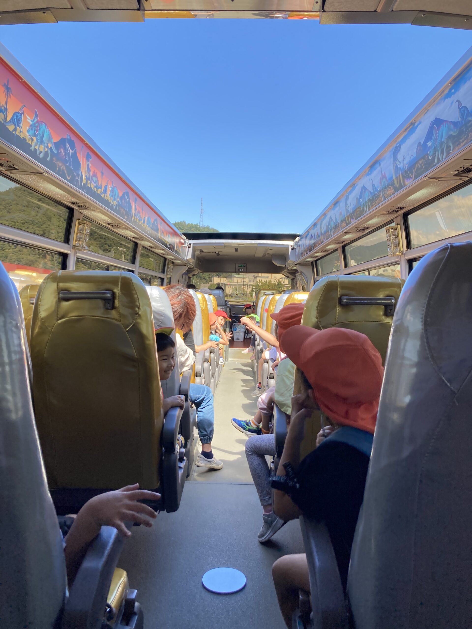 天井のあいているオープンバスに乗って子ども達は大はしゃぎ!!