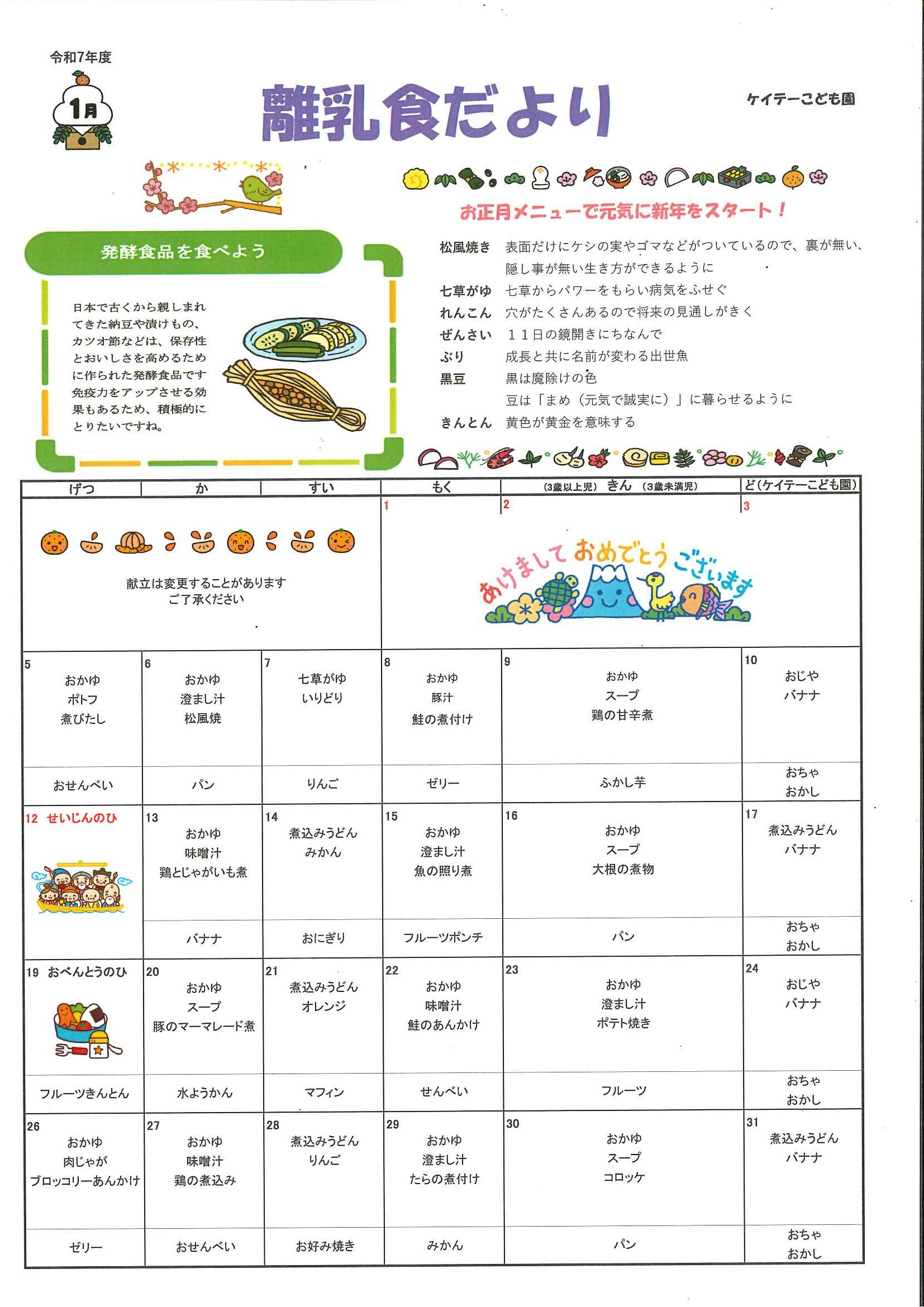 1月 きゅうしょくだより