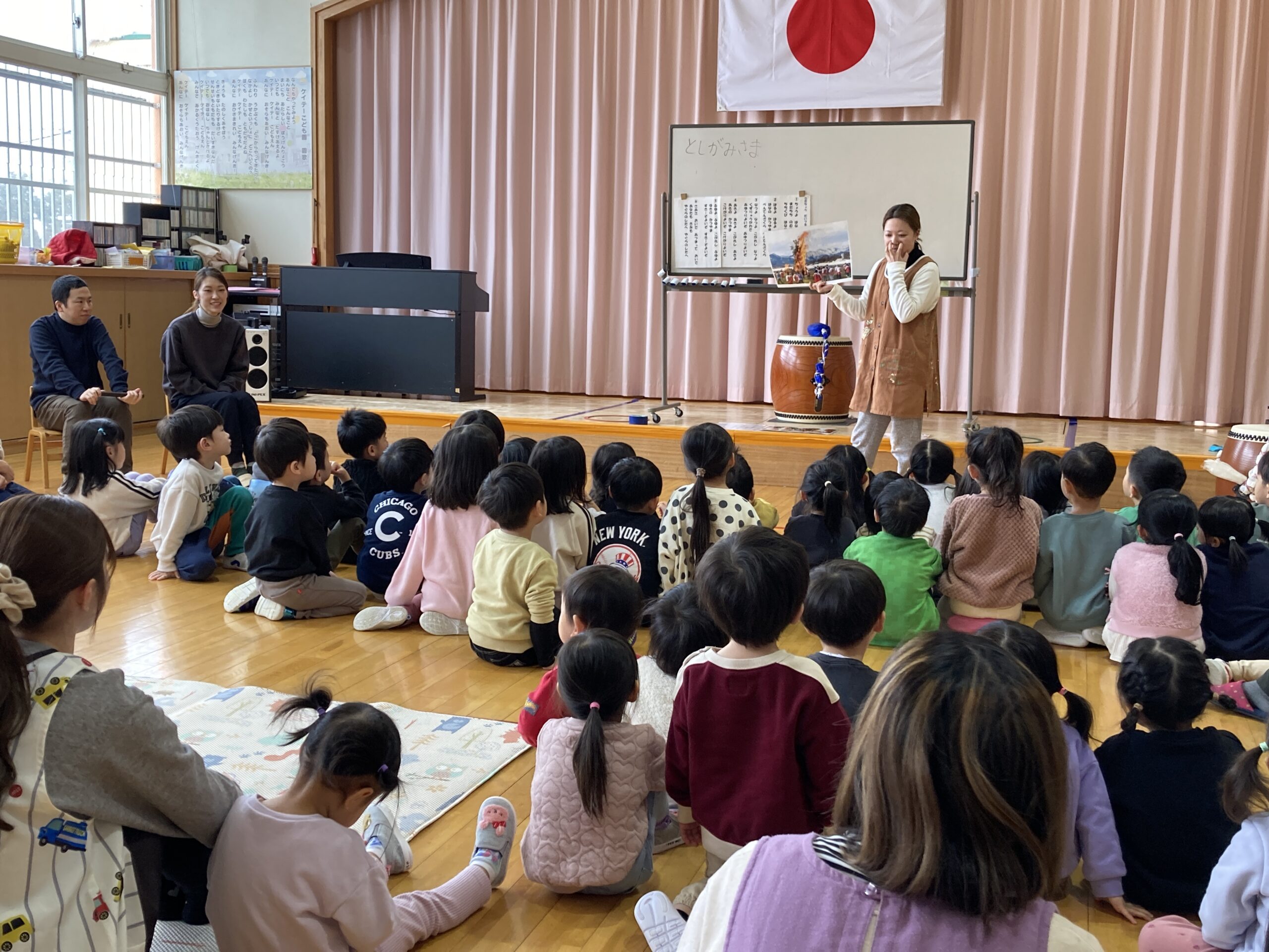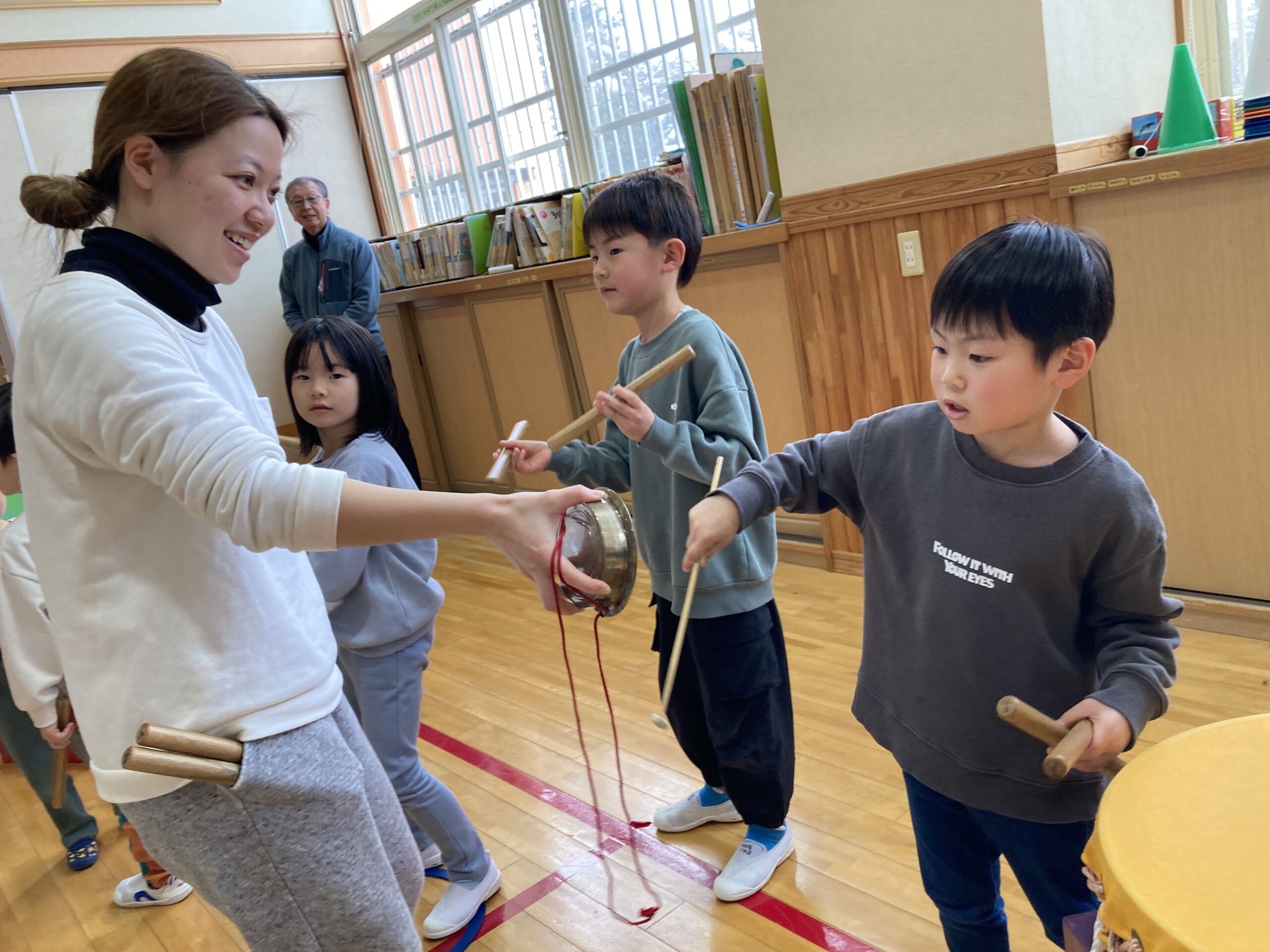 左義長祭りに向けて、勝山左義長囃子保存会の方に来園していただきました。
