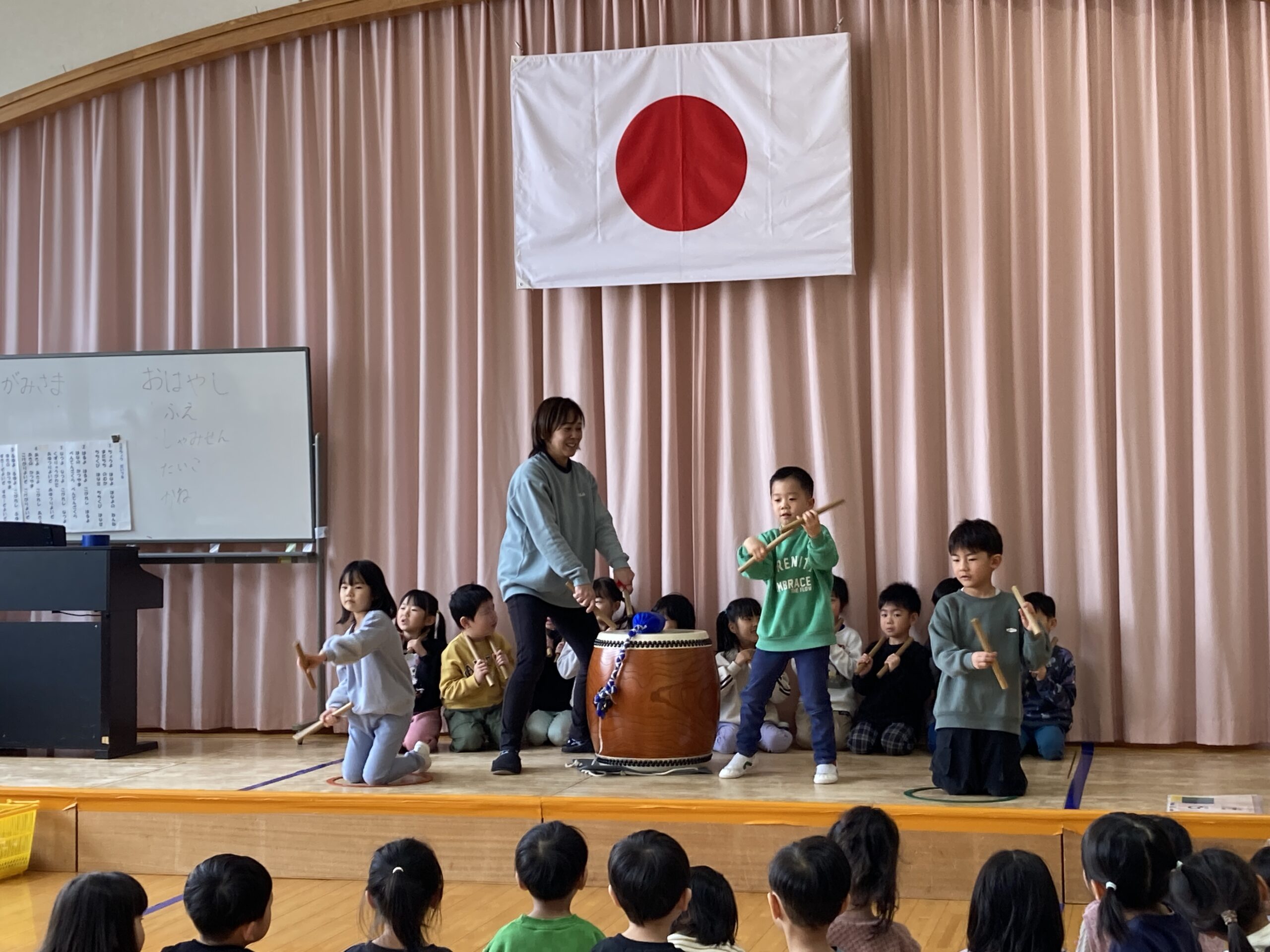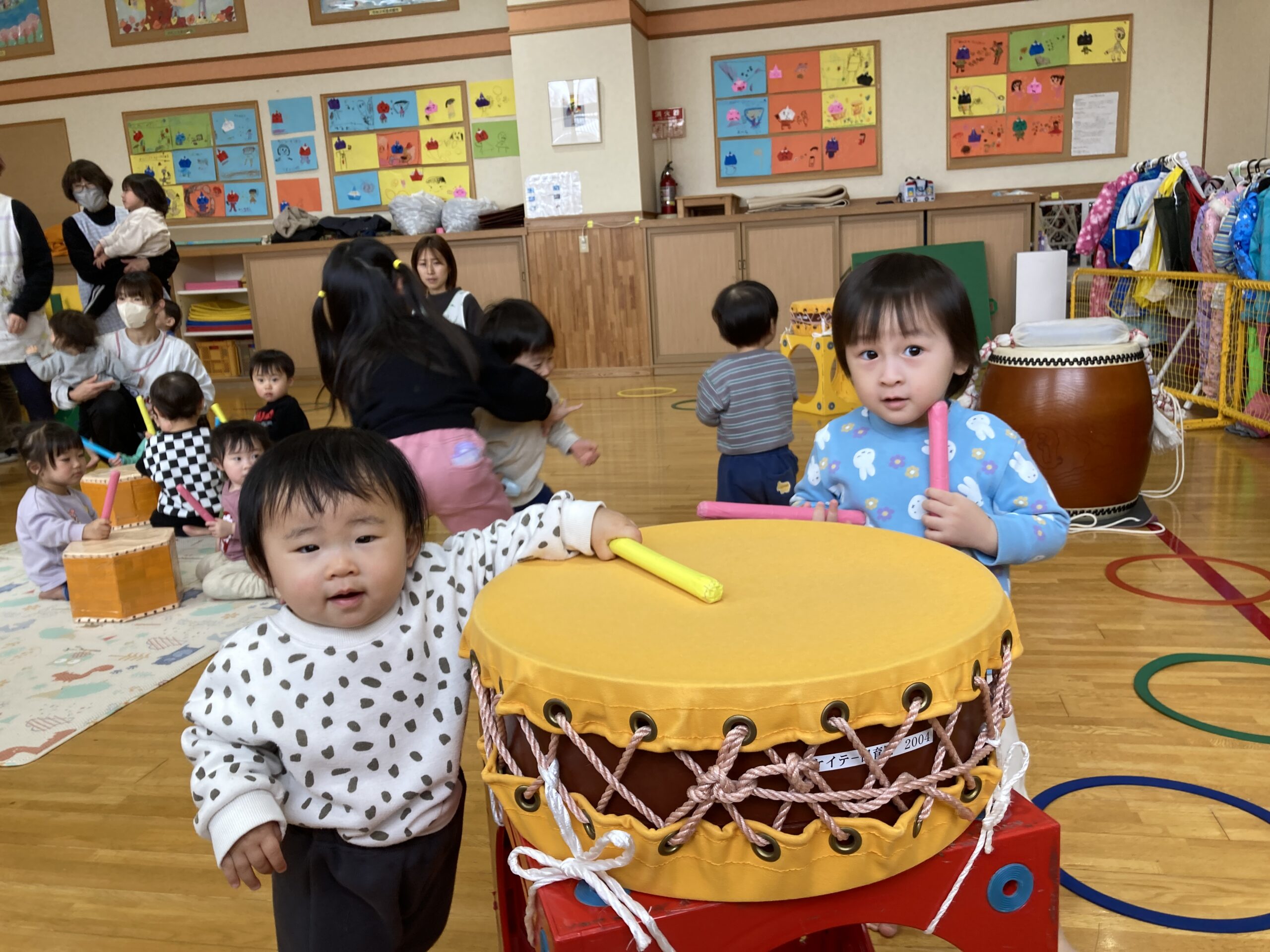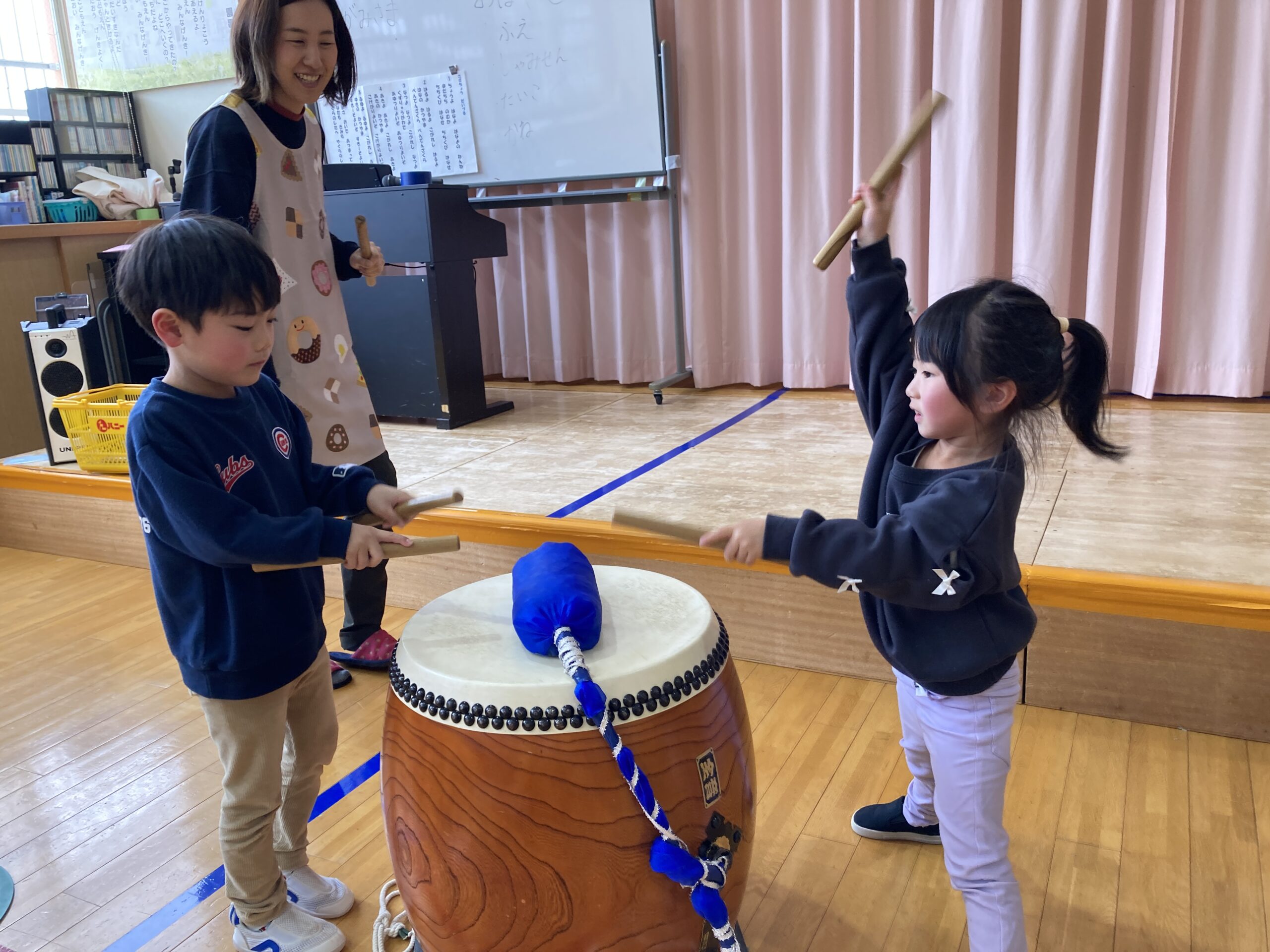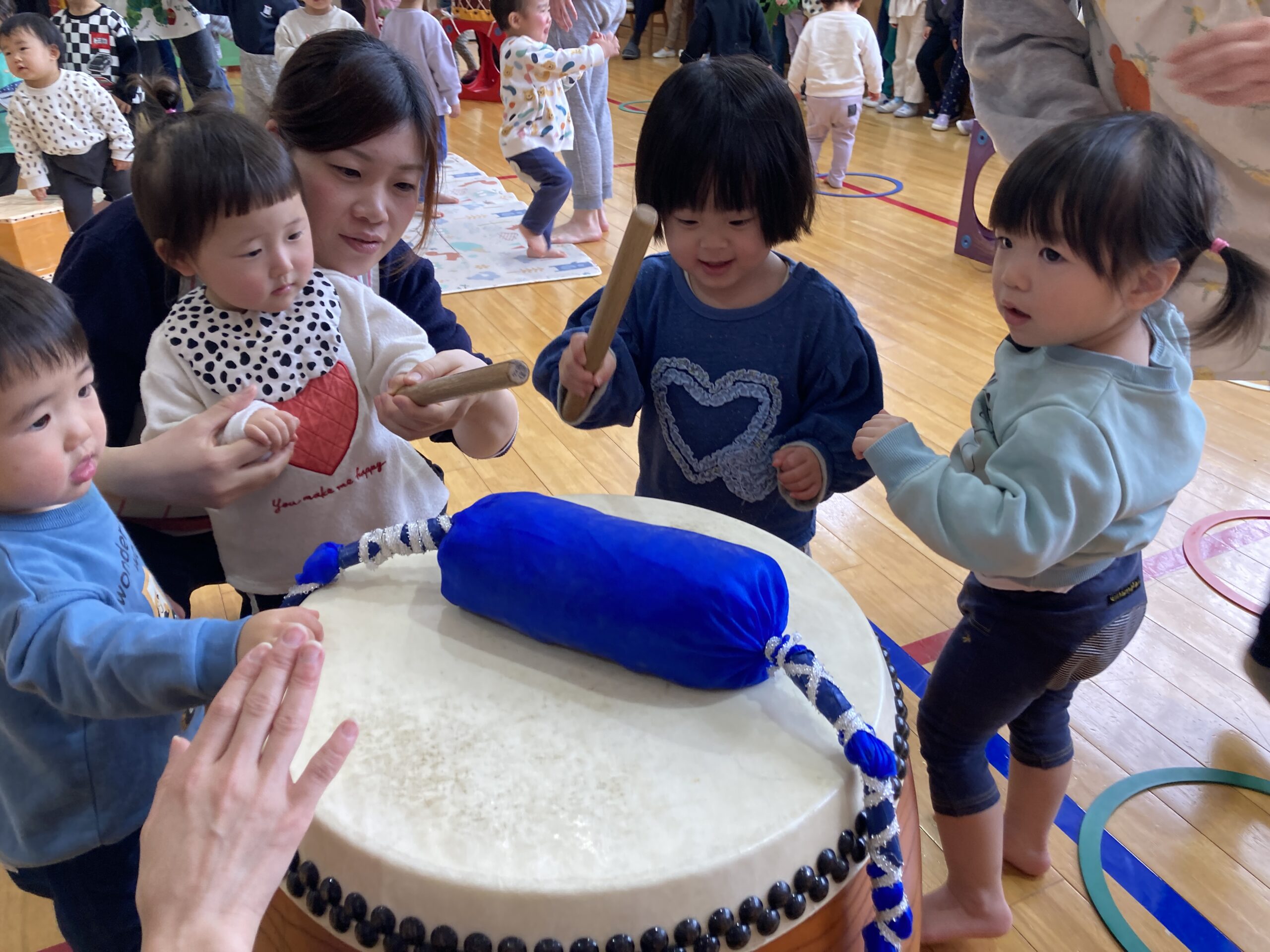 その後は実際に太鼓に触れてみました!ドンドン♪大きな音が聞こえるね。