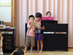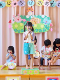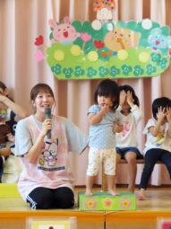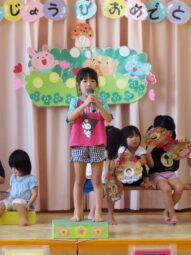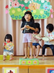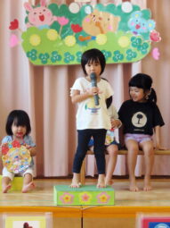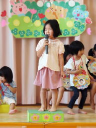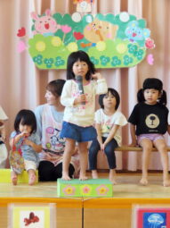 大きいクラスの子どもたちが、堂々と発表をする姿に成長を感じるとともに、小さくラスのお友達はこれからの心の成長が楽しみです。